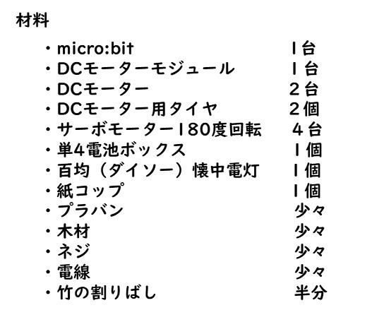 ムサシロボは、足の部分にサーボモーターを取り付けているのでMakeCodeのプログラムは不要です。